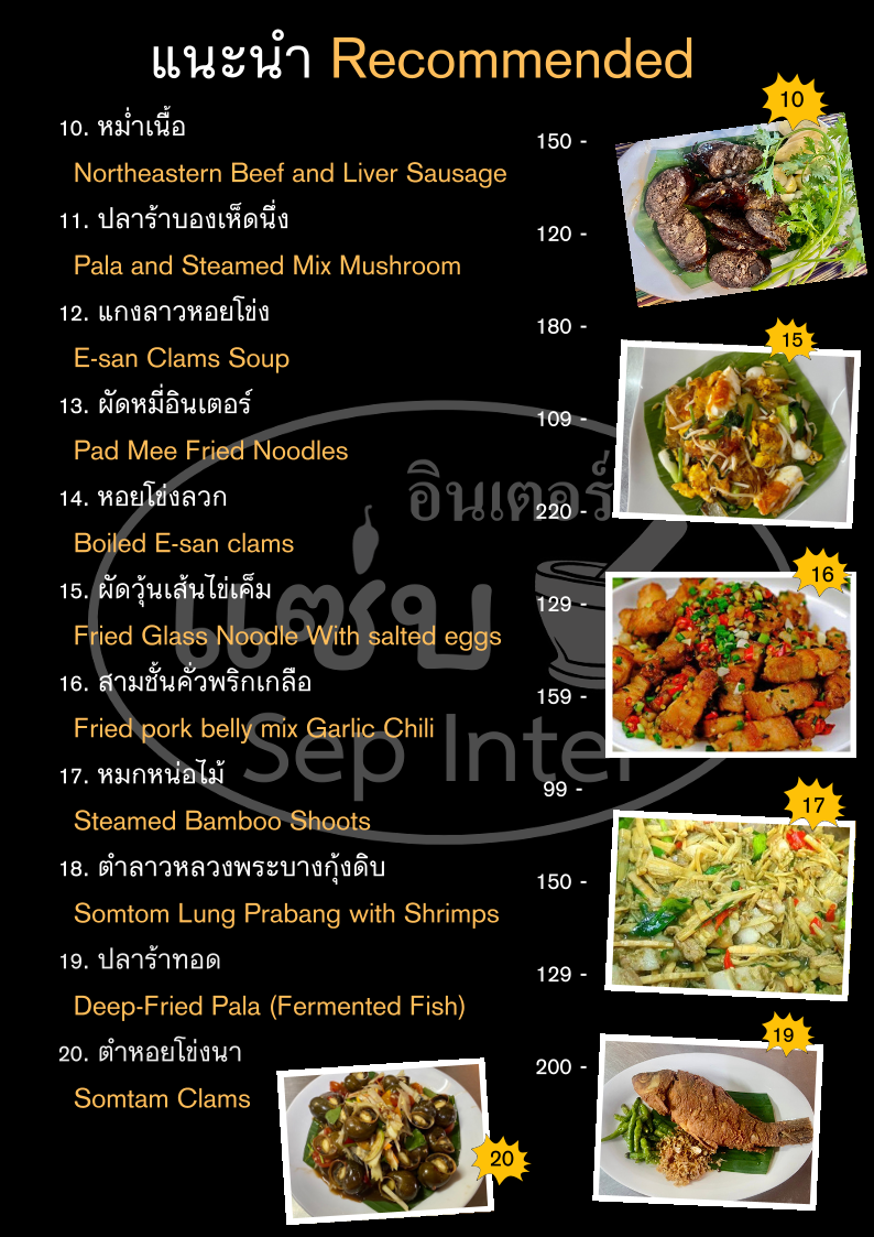 Customers have praised the bold flavors and diverse menu, though some note slight inconsistencies in certain dishes, which is rare given the overall quality. Beyond the food, แซ่บ อินเตอร์ is also a great place to catch live sports, adding a lively dimension to your visit. Conveniently located with ample parking, it’s perfect for casual lunches or relaxed dinners. The owner’s passion shines through, especially in their handcrafted burgers, reflecting dedication to flavor and quality. Ultimately, แซ่บ อินเตอร์ Sep Inter stands out as a must-visit for those seeking genuine Isaan dishes in a friendly, dynamic setting.